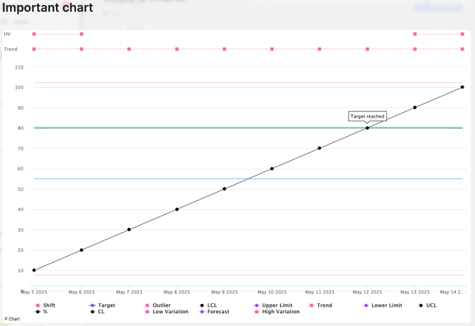 A target in a Simana chart is an addition you can add which shows a goal or marker for what is considered noteworthy for your data. It can help compare actual performance against an expected target, or show how high or low values should be.